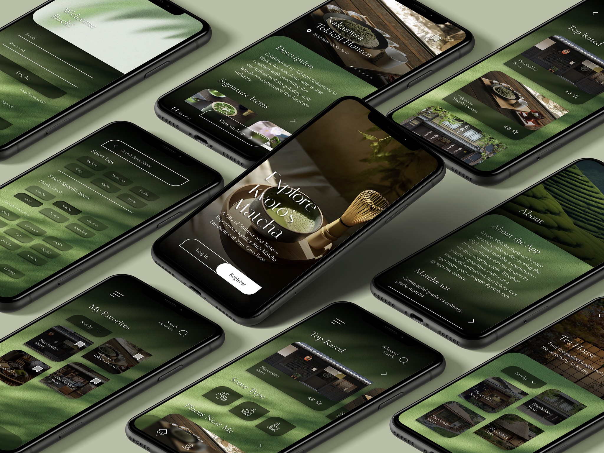 ChaFind is a mobile app concept that guides users through Kyoto’s rich matcha culture using curated locations, interactive mapping tools, and educational content. Designed as part of a location-based service project, the app blends cultural storytelling with functional wayfinding, offering users a thoughtful, visually engaging way to explore historic tea houses, modern matcha cafés, and ceremonial traditions.